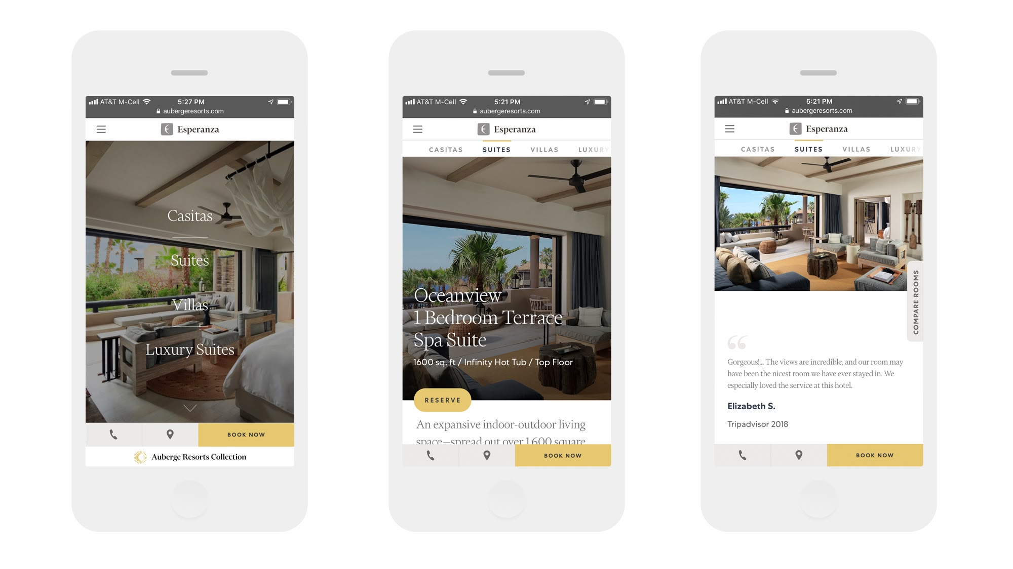 A digital design system for over twenty resorts showcasing rooms, restaurants, spas, and activities.